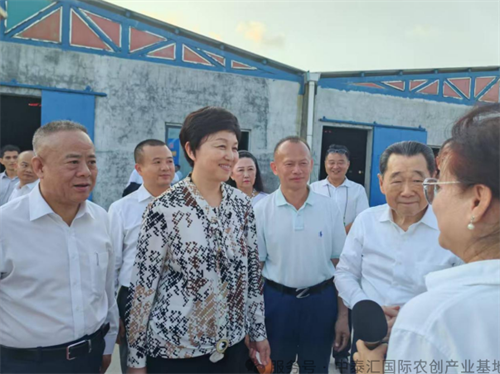 盖文启书记一行深入海南洲仔岛海洋实业生产经营一线,实地察看水产养殖基地、海洋牧场建设现场及水产品加工车间,详细询问企业在海洋资源开发、生态养殖技术应用、南海生物资源保护等方面的实践举措与成效,认真听取企业发展规划、核心业务布局及当前发展诉求。翁育娟详细汇报了公司的发展历程及核心业务板块,重点介绍了春园湾底播养殖项目、水产苗种进出口、海洋生态治理等重点工作,以及自身作为华侨投身海南海洋经济建设、助力中外经贸交流的实践与思考。