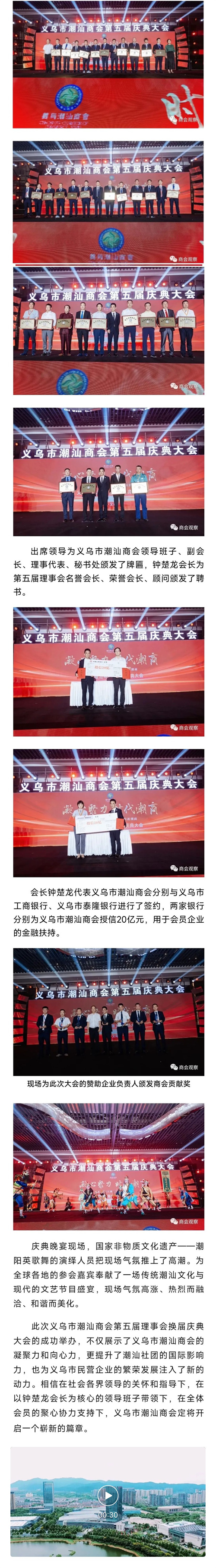 国际潮青联合会出席义乌潮汕商会第五届庆典大会 祝贺钟楚龙接任第五届会长