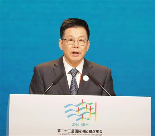 黄孟复作视频致辞林克庆代表广东省委、省政府和省政协,对广大潮侨潮商和潮属社团表示衷心感谢。他指出,潮侨潮商始终秉承爱国爱家的优良传统,驰骋商海、情系桑梓,在广东改革开放、脱贫攻坚、现代化建设的每一个关键进程中都作出不可磨灭的贡献。当前,广东正深入学习贯彻党的二十届四中全会精神和习近平总书记视察广东、出席第十五届全国运动会开幕式重要讲话重要指示精神,以走在前、作示范、挑大梁的责任担当,高站位、大格局谋划“十五五”时期经济社会发展,奋力在现代化建设新征程中增创新优势、实现新突破。衷心希望广大潮侨潮商、潮属社团继续发挥独特优势,当好现代化建设的坚定参与者、中外友好合作的积极推动者、文化传承与公益事业的热心奉献者,续写赤子丹心的时代新篇,为祖国为家乡作出新的更大贡献。常启德表示,非常荣幸能够在全球潮人的故乡——潮州,见证世界各地潮团在此寻根溯源、增进情谊、谋求共同发展。这种团结精神正体现了联合国在成立80周年之际所倡导的价值观。无论是在慈善事业、商业交流、文化传承,还是发展合作领域,全球潮人始终践行着联合国和平、发展、人权的创始愿景。在潮州这座拥有1600多年文化历史的城市,人们能够感受到传统与现代交融所迸发的活力。这种团结、感恩和坚韧不拔的精神历久弥新,使得潮人得以在世界各地繁荣发展。让我们携手推进可持续发展、深化多边合作、加强跨文化对话,共建一个更加包容、繁荣和可持续的未来。“欢迎回家!”何晓军代表潮州市委、市政府和家乡人民向各位乡亲表示最热烈的欢迎和最衷心的感谢。他指出,潮人同根同源,千年文脉是我们的精神纽带;潮人知恩报恩,心系家国是我们的不变情怀;潮人互助互爱,仁义共赢是我们的鲜明标识;潮人敢闯敢拼,民族复兴是我们的时代使命。潮州将认真落实党的二十届四中全会精神,牢记习近平总书记殷殷嘱托,奋力拼经济、谋发展、兴文化、惠民生,把潮州建设得更加繁荣美丽。希望全球潮人勇立潮头、开拓进取,坚定扛起民族复兴的时代使命,在支持参与祖国现代化建设、弘扬中华文化、促进祖国和平统一等方面发挥更大作用,共绘“根脉亲、家国兴”的壮丽画卷。谢国民表示,中国坚持高水平对外开放,高科技产业不断创新,高质量发展不断升级。正大集团作为中国改革开放的参与者、见证者和受益者,始终看好中国市场,也对潮州的营商环境和发展前景充满信心。未来将向中国创新企业、高科技企业学习,深耕科技创新,抢占AI时代“智”高点,扩大全球产业链合作,把中国的先进经验与成功模式“带出去”,推动更多“中国制造”“中国智造”走向世界。管乔中表示,扎根潮州发展多年来,他亲身感受到潮州营商环境一年更比一年好,这片热土焕发着前所未有的生机与活力。凯普将坚定实施“总部经济在潮州”的发展战略,坚持实业报效家国,携手天下潮人以科技赋能现代中国,以文化凝聚潮人力量,助力中华民族伟大复兴。邱纯鑫表示,无论走到哪,他始终记得自己从韩江边走来。潮商品格,是他们面对技术难题时的韧性,是敢于在全球竞争中亮剑的勇气,更是成功后不忘反哺家乡的情义。将传承潮人敢闯敢试、勇立潮头的精神,致力科技创新,团结更多潮籍青年,续写年轻一代潮商故事。第二十三届国际潮团联谊年会主席徐和现场介绍《潮人慈善纪事》编撰进展。本书全面搜集整理全球潮人慈善事迹,并同步建设“潮人慈善”专题数据库,目前已搜集整理约100万字资料,涉及逾700名慈善人物,初步实现潮人慈善事迹的数字化展现、永久性保存、高效率检索与开放共享。同时,将“潮人慈善”专题数据库作为《潮人慈善纪事》的核心发布与呈现形式,打造一个永不落幕的潮人慈善事业数字平台。