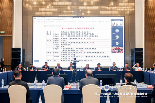 2026年4月10日下午,国际潮团总会第二十四届第一次常务理事暨理事联席会议在佛山万豪酒店召开。国际潮团总会主席、执行主席、常务理事、理事出席会议,部分荣誉、名誉职衔成员及相关潮团代表列席会议。会议围绕各项议题进行讨论并审议通过有关决议。