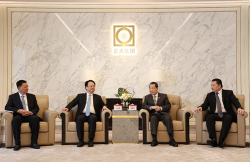 近日,吉林省委书记景俊海,省委副书记、省长胡玉亭一行莅临正大集团中国区总部,与国际潮青联合会永远名誉会长、正大集团资深董事长谢国民,正大集团董事长谢吉人在北京正大中心会谈。中国中信集团有限公司党委书记、董事长奚国华参加会谈。