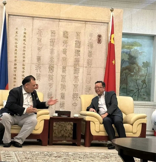 拜访大使馆的代表有:多明戈荣誉顾问、林翰会长、吴肇新荣誉会长、许天佑常务副会长、罗菁副会长、赖鹤耿副会长、潘建强副会长、蔡泰林副会长。
