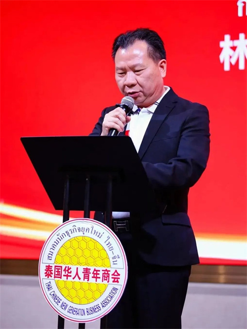 新任会长李嘉淳上台致感谢词。他向李桂雄永远名誉会长、林嘉南名誉会长及各位青商会前辈为商会发展所奠定的深厚基础表示感谢,向各位会员对其担任新届执委会会长一职的信任和支持表示由衷的谢意。他提到,当前我们正处于国家高度重视的阶段,我们的各项会务工作得到了中国驻泰国大使馆的大力支持,同时也得到了老一辈侨社的肯定。因此,大家要充满自信,在泰合法合规地经营好各自的事业,稳步前行。他呼吁所有会员积极主动,将自己的事业做大做强,紧紧跟随侨社的步伐,为泰国的华人华侨群体做好服务。他表示,不论大家遇到任何困难、问题,或是遭遇不公待遇,青商会将永远是大家坚实的后盾,积极为大家争取应得的权益和公正待遇,为推动华人华侨群体在泰国的良好发展贡献力量。他表示,未来,在第十二届执委会会务发展的基础上,将继续不断深化发展,与时俱进,与各位会员一道为青商会继续贡献力量!