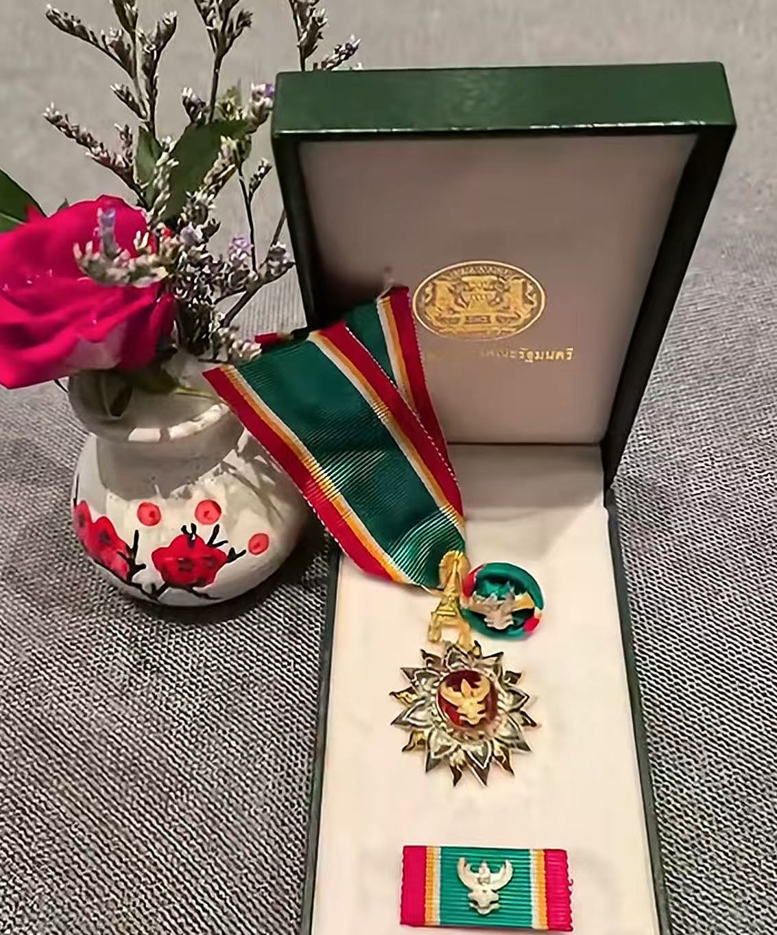据泰王国驻广州总领事馆提名并接泰国外交部通知,11月26日上午,国际潮青联合会名誉会长、正大集团副总裁李闻海在泰王国驻广州总领事馆被授予泰国王室勋章,泰王国驻广州总领事馆代总领事常佩瑶担任授勋人。