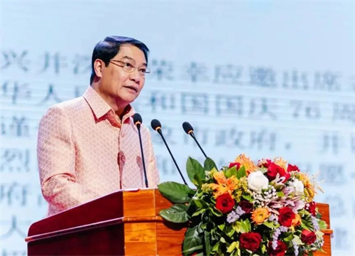 姚宾在致辞中回顾了老挝中华总商会十年的发展历程。他指出,商会始终秉持“服务侨胞、服务中老经贸合作与文化交流”的宗旨,积极参与公益慈善,推动侨社融入地方发展。他特别提到,商会在对外传播方面的努力——创办《中华时报》,助力侨社发声并融入国际传播格局。姚宾宣布,商会荣获“老挝国家三级发展勋章”,成为首个获得该殊荣的侨社机构。值此十周年之际,商会同时成立青年商会和老挝华侨华人研究中心,并推出历史专著《老挝华侨华人史话》,为侨社发展注入新动力。姚宾表示,商会将继续搭建中老交流合作平台,携手四海同仁,共创更加辉煌的未来。