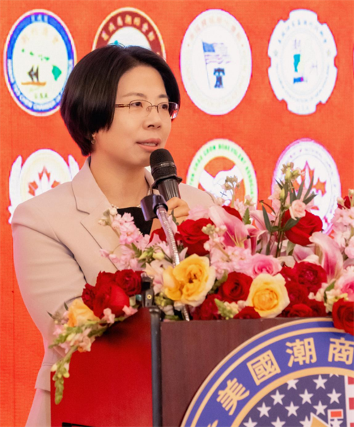 孙丽萍特别赞扬了潮商群体爱国爱乡的赤子情怀,乐善好施的高尚品德,以及在经济、社会等各领域取得的卓越成就。同时,高度肯定了美国潮商总会与美国潮青总会在团结凝聚广大在美潮籍乡亲,积极服务社区,造福侨胞,致力促进中美两国间的交流与合作所发挥的关键桥梁作用。她祝愿潮商总会、潮青总会会务蓬勃发展、蒸蒸日上。