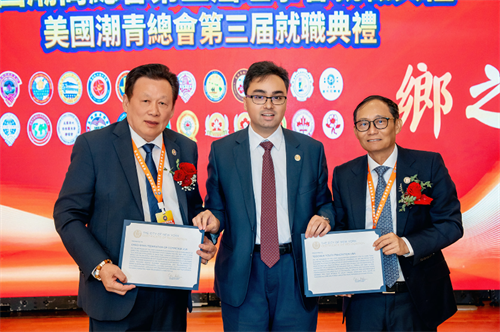 美国潮商总会第三届理监事会暨美国潮青总会就职典礼于2025年10月8日在纽约隆重举行。来自全球潮籍乡亲、当地政要、侨团领袖等逾六百位嘉宾齐聚一堂,共襄盛举。