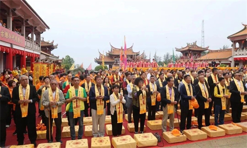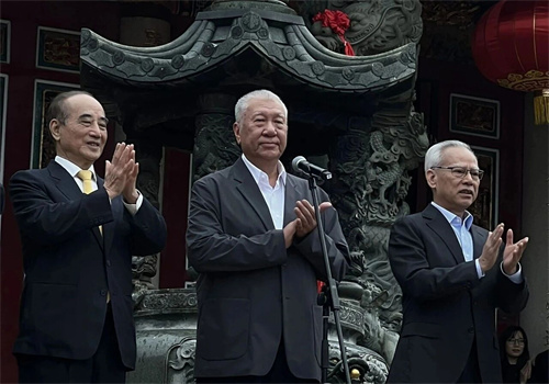 何厚铧、王金平、林金赞在陈明金、颜奕萍陪同下拜天及移步大殿向天上圣母上香