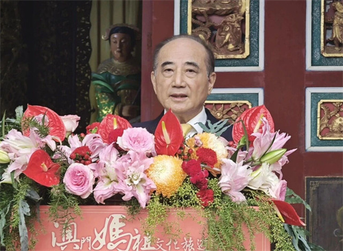 王金平致辞表示,澳门不仅拥有深厚的历史底蕴,更是中西文化交融的璀璨明珠。近年来,在“一国两制”成功实践下,澳门经济发展成就斐然,稳居世界前列,社会和谐稳定,居民安居乐业,呈现出一派繁荣祥和景象。他又指,妈祖文化源远流长,是中华优秀传统文化中不可或缺的重要组成部分,妈祖所蕴含的扶危济困、慈悲博爱、扬善抑恶核心精神,早已融入中华民族的文化血脉,成为我们共同珍视的道德瑰宝。他表示,相信通过这样的文化盛会,不仅能凝聚全球信众的情谊,更能让妈祖“立德、行善、大爱”的精神得到更广泛传播,为促进社会和谐与世界和平贡献一份独特的精神力量。
