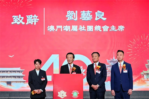 刘艺良致辞称,澳门潮属社团总会一直以爱国、爱澳、爱乡为光荣传统和使命,紧密团结着旅澳乡亲。澳门潮州同乡会作为历史最为悠久的潮属社团,已走过了四十载春秋,承载着潮人的深厚情谊。潮青协、潮妇协共同传承潮人敬老、尚学的优良传统,携手推动会务的长足发展,让潮人文化薪火相传、生生不息。同时,澳门潮汕总商会及汕头、潮州、揭阳各商会自创会以来,也一直在这个大家庭中发挥着不可或缺的作用,一直秉承潮商的优良传统“敢想、敢拼”,在推动内地对外贸易及促进国际对华贸易方面,始终扮演着活跃且重要的角色,彰显了潮人在经济领域中的卓越贡献和影响力。