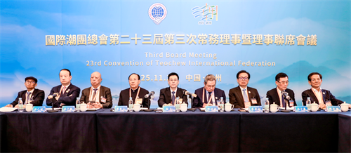 会议听取了国际潮团总会执行主席兼秘书长李奕标委托执行秘书长林梅所作的《国际潮团总会2025年度会务工作报告》,审议并通过了《国际潮团总会2024年度财务报告》、马来西亚潮州公会联合会更换常务理事代表、澳洲潮州同乡会和海南省潮商经济促进会更换理事代表、国际潮团总会第二十四届理事会名单等事项。
