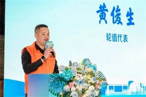 黄俊生代表联合接旗的揭西、惠来、饶平三家青委会登台致辞。他表示,接过会旗,接过的既是荣誉,更是沉甸甸的责任。三家青委会将结成紧密协作的“青春生力军”。面对新一届的重任,他们将在传承经典的同时融入青年新思想,全力以赴筹办一场有传承、有创新、更有温度的青年盛会,不负各界的信任与期待。他表示,三家青委会必将齐心协力,与全体潮青兄弟姐妹携手,在粤港澳大湾区的发展浪潮中共同奋进,共创精彩未来。