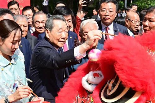 当天,使馆院内张灯结彩,洋溢着浓浓的中国年味,身着泰服的机器人和舞狮装扮的机器狗热情迎宾。伴随着潮汕传统英歌表演,张建卫大使、阿努廷总理与谢国民资深董事长共同为瑞狮点睛,拉开活动序幕。
