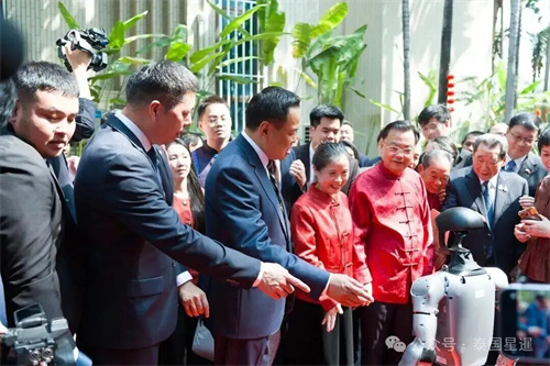 使馆外交官与机器人用中泰文主持节目,中国制造的机器人还表演了现代舞、打太极,将传统文化与高科技元素巧妙融合。活动全程洋溢着喜庆祥和的气氛。