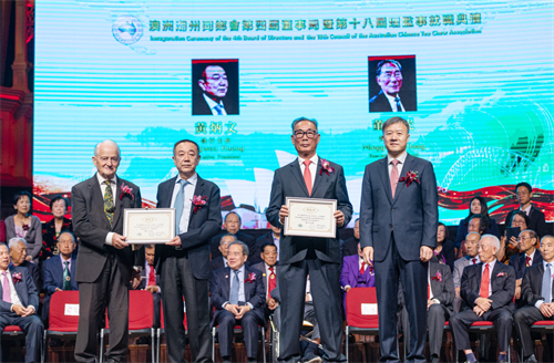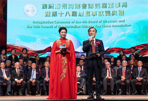 侨鑫集团创始人、董事长,澳洲潮州同乡会永远荣誉主席周泽荣,旭日国际集团创办人,主席,澳洲潮州同乡会永远荣誉主席蔡志明为大会发来贺信。典礼在富有中华传统特色的醒狮迎宾中拉开序幕。全体与会人员肃立,奏唱澳大利亚和中华人民共和国国歌,典礼正式开启。澳洲联邦政府前移民和多元文化事务部长、前总检察长PhillipRuddock(左一),中国驻悉尼总领事(大使衔)王愚(右一)为董事局执行主席黄炳文(左二)、董明光(右二)授予任职牌匾董事局主席周光明、执行主席黄炳文(左一)、董明光(右一)为第十八届会长方帆授予任职牌匾黄炳文、董明光、林晋文、郑通亮、杜荣、刘映南、ABC魏太、庄儒武、吴伟仪、刘闻曜、吴晓平、林辉文、蚁美通、陈才雄、林少华等获聘为澳洲潮州同乡会永远荣誉主席在庄严的授匾仪式中,中澳双方主礼嘉宾分别为新一届董事局执行主席及多位荣誉主席颁授牌匾,并向第十八届会长方帆授予任职牌匾。大会同时宣布新一届理监事会成员名单并合影留念,标志着新一届领导班子正式履职。方帆会长在致辞中向创会会长周光明主席长期以来为同乡会发展、会址建设和万福寺筹建所作出的卓越贡献致以崇高敬意,并表示新一届理监事会将传承创会精神,凝聚乡情弘扬文化,服务侨社,促进中澳交流,推动同乡会实现更高质量发展。他介绍,澳洲潮州同乡会自1988年成立以来,始终立足服务侨胞、 融入主流社会、 弘扬中华文化,在澳大利亚多元文化格局中发挥了积极而深远的作用。三十余年来,同乡会不断发展壮大,已成为澳洲华人社会中具有广泛影响力的重要社团之—。长期以来,澳洲潮州同乡会积极参与社会公益与慈善事业,在重大灾害救援及社会服务中持续贡献力量,展现出华人社团的责任担当与人文关怀。与此同时,万福寺项目的推进,也将进—步拓展文化交流载体与潮史记录,成为促进中华文化传播与多元文化融合的重要平台。澳洲联邦政府前移民和多元文化事务部长、前总检察长Phillip Ruddock致辞纽省影子司法部长、影子青年司法部长、立法会反对党领袖Damien Tudehope致辞王愚、PhillipRuddock、Damien Tudehope先后致辞,对澳洲潮州同乡会长期以来在促进社区发展、推动文化交流、增进中澳民间友好等方面所做出的贡献给予高度评价,并对新—届理监事会寄予厚望。典礼上还播放了纪录片《澳洲潮州人》,系统呈现澳洲潮州同乡会在澳发展的历史脉络,以及在社会担当和慈善事业方面的积极作为,引发在场嘉宾强烈共鸣。