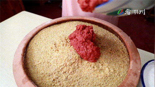 猪肉、芝麻、蒜头、白糖,再加上酒和腐乳等十多种原材料精挑细选、搅拌融合,诱人的香味在空气中交织弥漫。