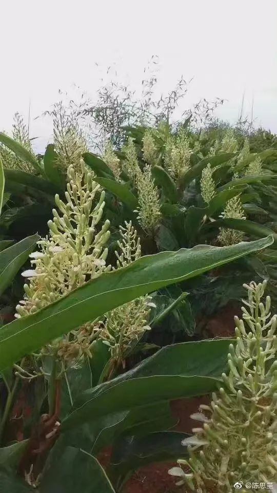 每年五六月份是开花季节,南姜开花非常美,是白色的穗状花序,花香不浓但很清新。成片的南姜花,是它作为一个经济作物之外,被人忽视的审美价值。
